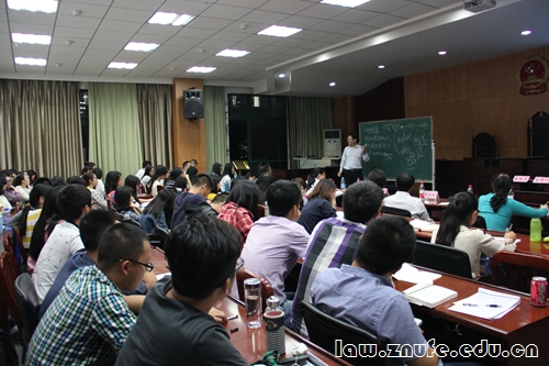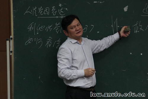 10月19日晚,法学院经济法学科主办的“经济法学术活动月”系列讲座首场讲座于文泰楼模拟法庭(三)开讲,江西财经大学法学院院长蒋悟真教授做客我校法学院,以“现代法的人性假设及其解释”为题发表了精彩演讲。湖北省经济法研究会会长、法学院经济法学科带头人刘大洪教授,法学院副院长黎江虹教授,法学院经济法系副主任王永强副教授到场聆听。