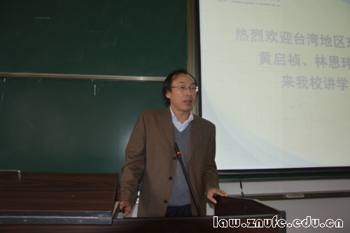 11月11日下午,应我校教务部部长刘仁山教授的邀请,台湾东海大学林恩玮副教授在文添楼402围绕“台湾国际私法理论之源流与发展”这一主题展开深入讨论。钟丽副教授、黄志慧博士与我院部分本科生和研究生一起聆听了讲座。向在胜教授担任本次讲座主持人。