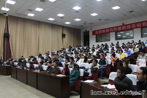 (通讯员 田伟娜 李良珏 杨云凤)11月8日晚,以“行政法治的问题与展望”为主题的讲座于文泓楼报告厅展开,中国政法大学教授、中国行政法学研究会会长马怀德教授主讲,我校方世荣教授担任主持人。法学院宪法学与行政法学科胡弘弘教授、徐银华副教授、杨勇萍副教授、戚建刚教授、丁丽红副教授、张红教授等老师出席讲座,众多学子到场聆听。