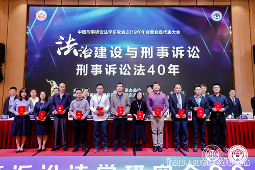 受中国刑事诉讼法学研究会的委托,李寿伟副会长在会议开幕式宣布了第六届青年刑事诉讼法学优秀科研成果奖获奖名单。在经过形式审查后确定正式参评的11部著作、34篇论文中,经过评审委员会评审,最终其中一等奖3项,二等奖7项,三等奖9项。其中,陈实副教授撰写并刊载于《中国法学》2018年第1期的《刑事庭审实质化的维度与机制研究》一文获评三等奖。会议开幕式现场为获奖青年学者颁发奖状证书。