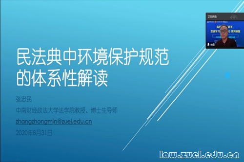通讯员(梁芷涵)8月31日晚,我院张忠民教授于中国知网在线教学服务平台开展线上讲座,主题为《民法典中环境保护规范的体系性解读》。