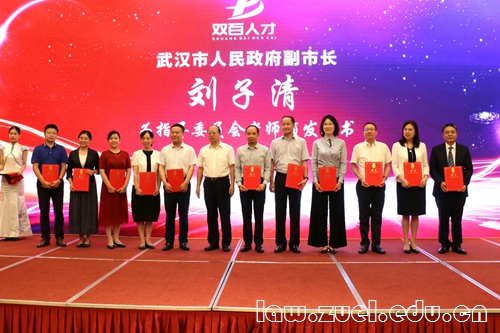根据“双百人才”培养计划实施方案的要求,武汉市司法局聘请了我校麻昌华、蔡虹、黎江虹、胡弘弘、严本道、郭倍倍等6位专家作为指导委员会老师,全程参与学员指导工作。在启动仪式上,武汉市人民政府副市长刘子清为几位受聘老师颁发了聘书。