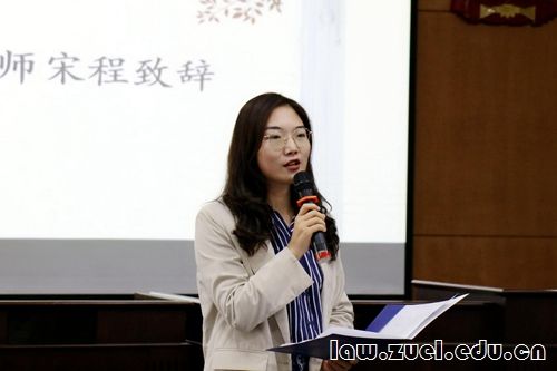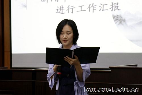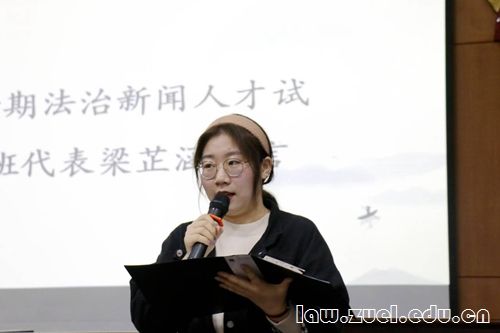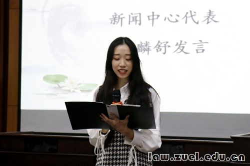 采写部部长梁芷涵作为法新班学员代表,同大家分享了她秉一腔热爱,守喉舌阵地的新闻工作历程。她认为,法新班的复合型授课为创作情怀与思维兼具的新闻工作提供了系统的学习契机,并表达了自己“以法学视角探察新闻内核,以时政思维明确责任担当”的追求目标。