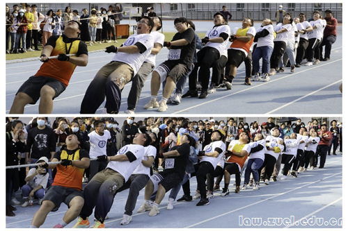 力拔山河气盖世,王者之师冠中南。旗帜飞扬、锣鼓喧天,拔河赛场上已呈沸腾之势。我院拔河选手一鼓作气,凭借三场二比零轻取对手挺进决赛,后再度以压倒性的优势战胜金融学院,成功续写十连冠的辉煌。
