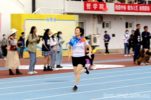 心有猛虎,细嗅蔷薇。备战时蓄势待发,枪响如离弦之箭,在教职工女子乙组50米决赛上,我院巢容华老师以8.91秒的成绩勇夺第一。