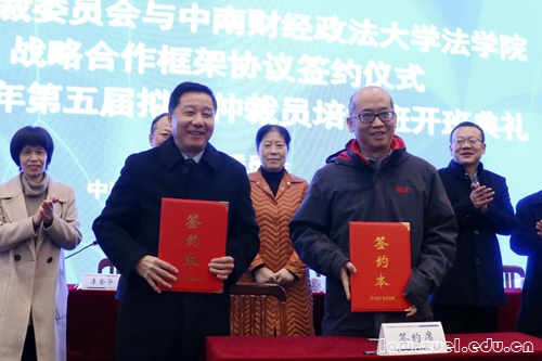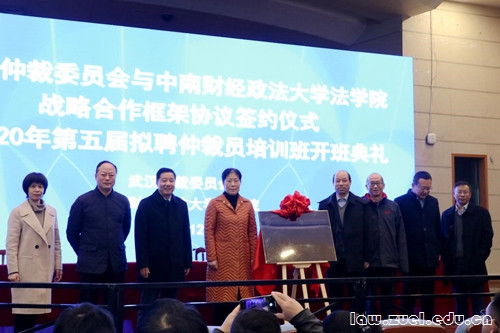 通讯员(彭雨函 栾富强 邓静奕)12月4日上午,武汉仲裁委员会与我校法学院战略合作框架协议签约仪式暨武汉仲裁委员会2020年第五届拟聘仲裁员培训班开班典礼于我校文泰楼模拟法庭(一)顺利举行。出席此次开班典礼的领导嘉宾有:我校党委常委、副校长姚莉,武汉仲裁委员会办公室党组书记、主任彭国元,校长助理、法学院院长徐涤宇,法学院党委书记张学平,法学院党委副书记李晓,律师与公证学院执行院长王永强,武汉仲裁委员会仲裁员工作处副处长廖群秀。武汉仲裁委员会办公室党组成员、副主任李登华担任主持人,第五届拟聘仲裁员培训班全体学员参加。