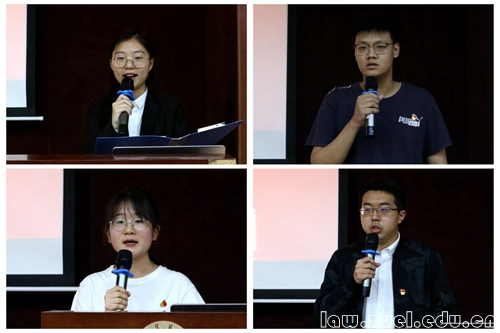 分组研讨结束后,研习会在文潭楼四楼报告厅举行闭幕式。湖南大学王哲、郑州大学李萧辰、华中科技大学王耔霖,分别代表小组作汇报展示,分享小组研习活动成果。河南大学王星玥、中国地质大学(武汉)张歌、湖北大学王娟娟、中南财经政法大学于梦涵,分别以《铭记峥嵘岁月,传承党的法治精神》《内涵·特质·价值:解读习近平生态文明法治理论》《中国红色法学奠基人:何思敬》《以我辈知产事业,献党百年法治征程》为题,作专题发言。