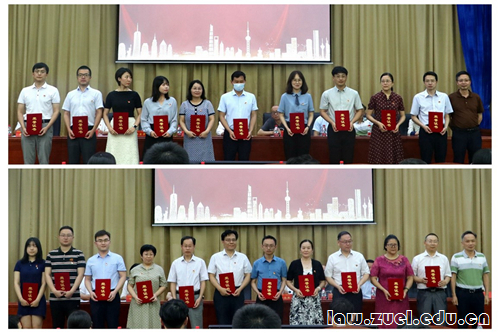 我院党委副书记刘筱彤同志,党委副书记、纪委书记兼行政副院长李晓同志,副院长肖志远同志,党委副书记兼法硕学生党总支书记易育同志为“优秀共产党员(学生)”颁发荣誉证书。