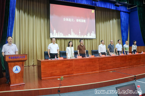 通讯员(栾富强 李紫薇 甘琳宇)6月24日下午,法学院党委于文泉楼报告厅隆重召开庆祝建党百年“七一”表彰暨全体教职工大会。校党委书记栾永玉,校长助理、法学院院长徐涤宇,院党委书记张学平,副院长肖志远、张家勇、江河,院党委副书记刘筱彤,院党委副书记、纪委书记兼行政副院长李晓,院党委副书记兼法硕学生党总支书记易育,各师生党支部书记、民主党派代表、学生党员代表及受表彰的先进基层党支部、优秀共产党员出席本次大会。院党委书记张学平同志主持会议。