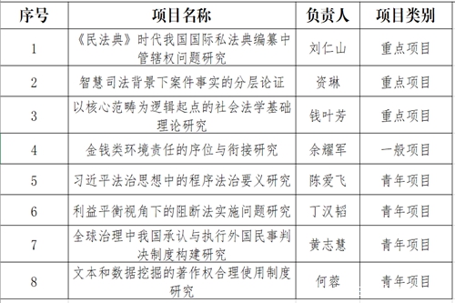 此次中南大法学共获得8个立项项目,名列全国第三!重点项目并列全国首位!