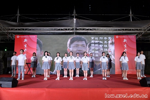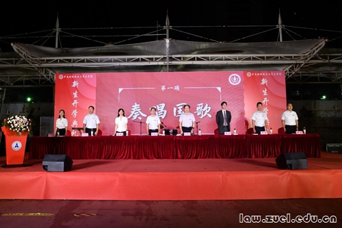 随着表演渐入尾声,典礼来到了最后一项宣誓环节。李俊副院长带领全体新生面向国旗庄严宣誓,铮铮誓言,掷地有声,“为中国法治和人类正义奋斗终身”展示着中南大法科新生昂扬向上的精神面貌、乘风破浪的拼搏气概以及一往无前的奋斗姿态,中南财经政法大学法学院2021级新生开学典礼圆满结束。