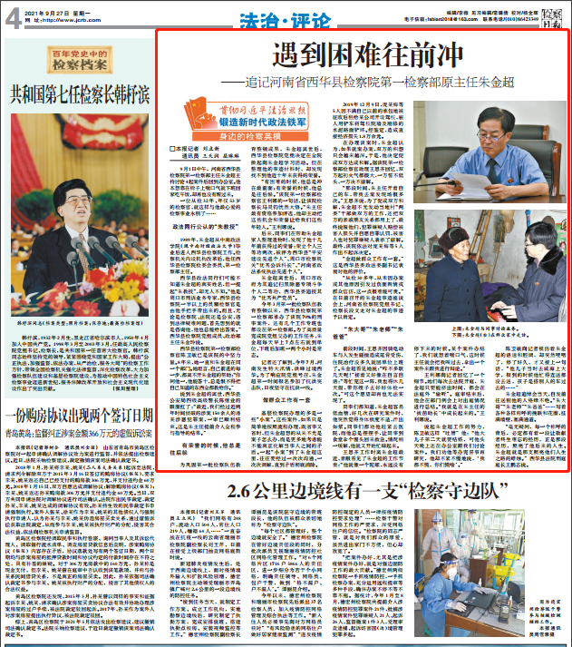 927日检察日报4版《遇到困难往前冲——追记河南省西华县检察院第一检察部原主任朱金超》
