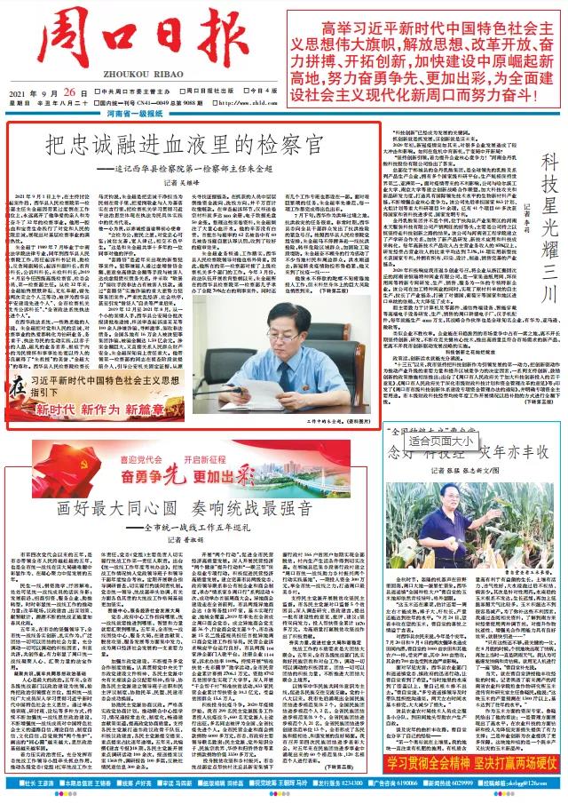 926日周口日报头版头条《把忠诚融进血液里的检察官——追记西华县检察院第一检察部主任朱金超》