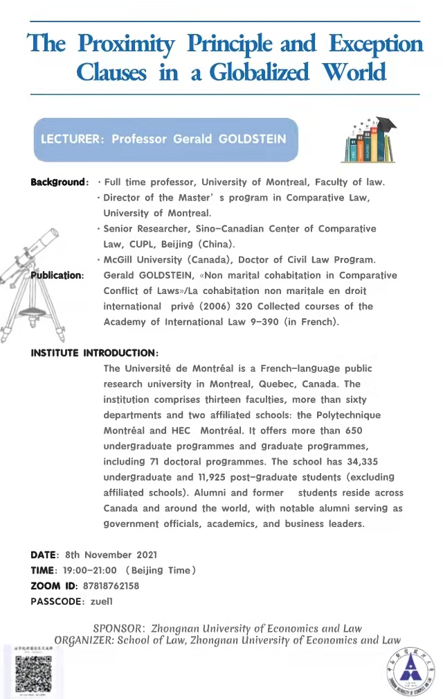 主讲人:Gerald GOLDSTEIN教授,蒙特利尔大学法学院全职教授