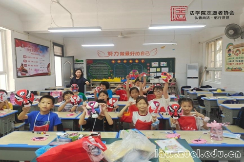 除了课业辅导和普法教育,服务队还陪伴孩子们进行了许多有趣的课后娱乐活动。在志愿者的陪伴下,在一个个四点半的课后,孩子们绘制了面具、制作了口罩、观看了电影……孩子们与志愿者一起,其乐融融地度过了美好的课后时光。