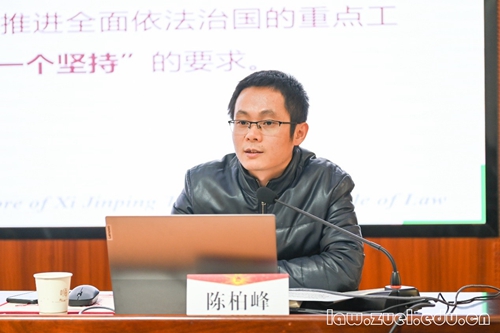陈柏峰教授聚焦“坚持党对全面依法治国的领导”,从五个方面系统阐述了习近平法治思想的核心要义和实践要求。辅导报告回顾了我国社会主义法治建设历程,全面阐释了习近平法治思想的政治意义、理论意义、实践意义和世界意义,从习近平法治思想的“十一个坚持”“四梁八柱”等方面,详细讲解了习近平法治思想的科学理论体系,对于如何把握全面依法治国的政治方向、重要地位、工作布局、重点任务、重大关系、重要保障等进行了系统讲述。