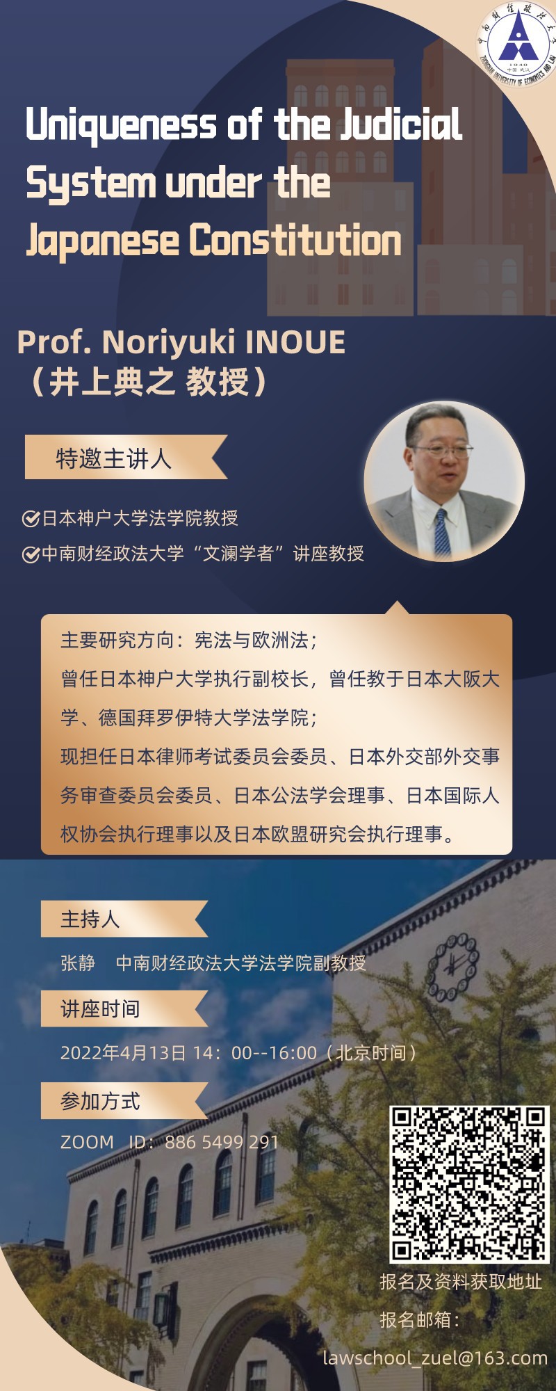 【讲座公告】日本神户大学井上典之教授系列讲座第2场