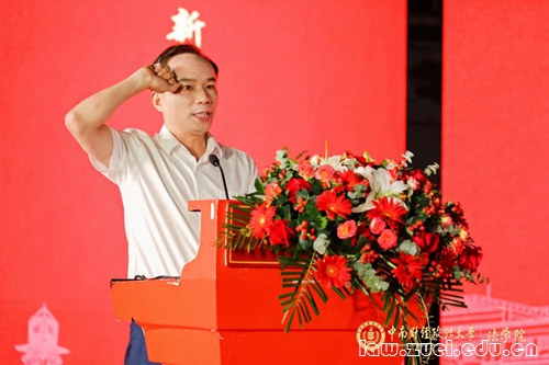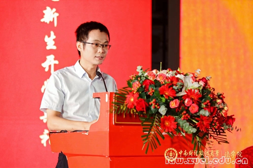 典礼在雄壮的国歌声中拉开序幕。法学院院长陈柏峰教授以《在内卷的校园追求自由》为主题致辞。陈柏峰院长首先对2022级新生进入法学院表示祝贺,希望各位同学们能继续保持优秀品格完成新的学业。对于同学们在大学校园中的成长,院长从近两年的流行词汇“内卷”与“躺平”切入,以自己经历的跨世纪的大学校园为参照,认为与整个社会同步,今天的大学校园日益内卷,在这样的校园环境中追求自由,更加弥足珍贵,也比其它时代更为必要。他认为自由散漫换一个角度时也是一种优点,它可以让同学们从容思考、慢慢探索。同时,院长还解读了“享受校园”这一词汇,他指出,享受校园不过是修辞化的表述,人生是个持续用力的过程,在大学生活中,需要学习和锻炼的方面还有很多,如阅读能力、分析能力、写作能力、社交能力、共情能力、批判性思维等,希望各位新同学不断去探索、去尝试、去努力、去坚持,进而在大学校园里去开启人生的可能性。
