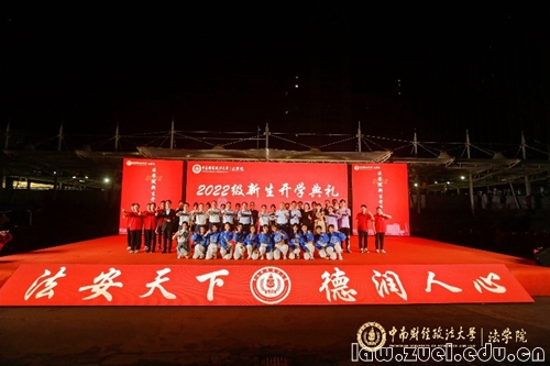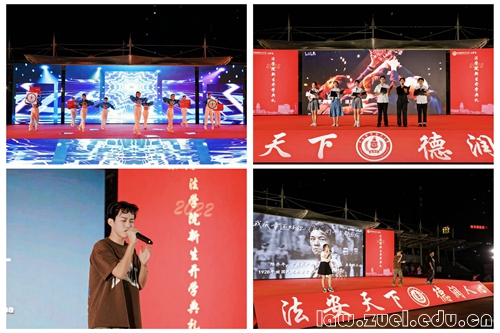 典礼最后,江河副院长带领全体新生庄严宣誓。“我志愿为中国法治和人类正义奋斗终身”铮铮誓言,掷地有声。法学院舞蹈团带来的舞蹈串烧《我们正青春》、新老生共同演绎的情景朗诵《中国青年》、2020级学生龙仕豪等同学演唱的原创歌曲《渲染》用动感舞姿、阵阵呐喊和青春旋律再一次诠释了当代青年生逢其时、奋斗其时的使命担当,展示了中南大法科新生昂扬向上的精神面貌、乘风破浪的拼搏气概以及一往无前的奋斗姿态,把现场气氛推向高潮。