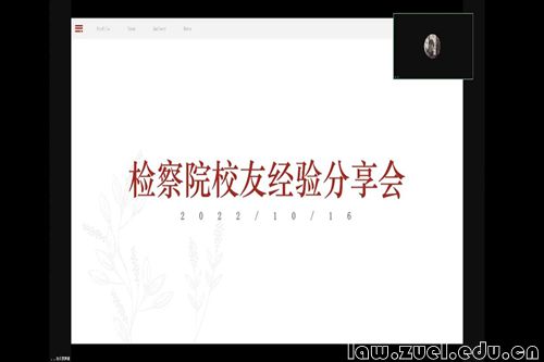 通讯员(徐金花 朱怡菲 何香梓 温子墨)就业是民生之本,为促进法学院毕业生更加充分更高质量就业,提高法科学子职业生涯规划能力,进一步做实、做细、做精就业指导与服务,帮助同学们了解社会需求、知晓国家学校各项促就业政策,法学院策划了“职业生涯规划与就业指导”系列活动,全力推进学院学生职业生涯规划与就业工作,助力法学学科“双一流”建设。10月16日晚,本系列活动第三讲:“检察院校友经验分享”于线上顺利开展。三位就职于检察院的优秀校友受邀担任本次活动主讲人,众多法科学子入会聆听。