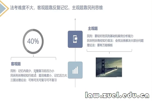 吕玥师兄由法考的内容和作用引入,从备考心态、教材推荐、主客观题的备考方法等方面提供了恳切的建议,并对各科目的考题情况和考点分布进行了分析和总结。