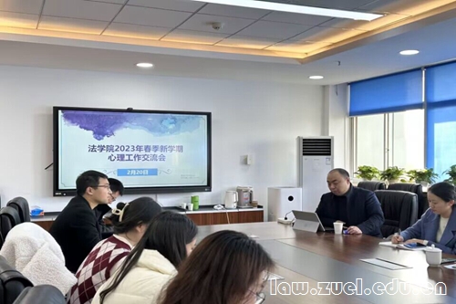通讯员 (朱亚男 董星仙)为扎实做好新学期心理健康教育工作,进一步提升学院心理育人工作实效,2月20日上午,法学院“心火燎原”心理健康教育工作站在文治楼615会议室组织召开了2023年春季新学期心理健康教育工作专题研习交流会,校心理健康教育咨询中心副主任杨子云副教授受邀参会指导,法学院全体本科生、研究生辅导员到场学习交流。会议由院党委副书记李司铎主持。
