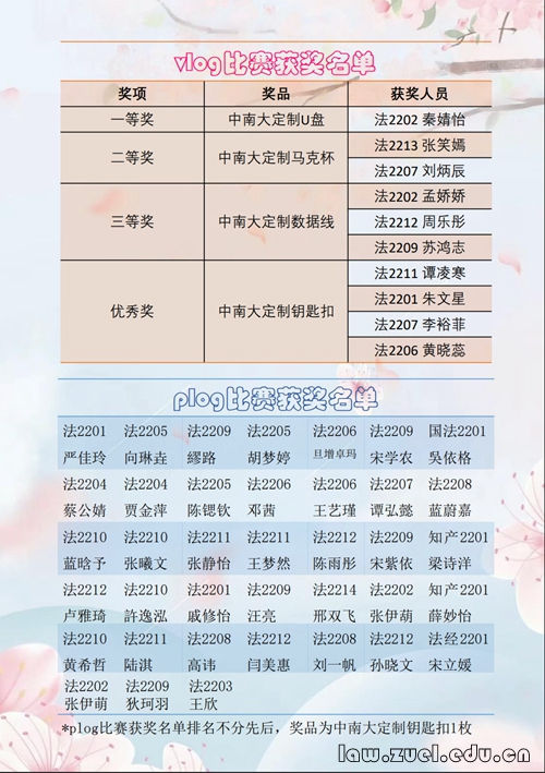 通讯员(杨舒乔 王艺瑾 夏含悦)“坤宫半夜一声雷,蛰户花房晓已开。”惊蛰一过,气温回暖,山野泛青,柳抽新芽,花相盛开。在此春回大地之际,为深入贯彻党的二十大精神,响应建设社会主义文化强国的目标,提高学生的文艺素养、丰富校园生活,法学院本科生2022级团总支联合法学院学习发展中心面向2022级法学生组织开展了“春日唤醒计划”主题活动,以vlog及plog的形式展现出中南大的春日限定风貌和当代大学生的青春风采。