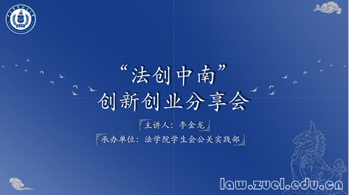 通讯员(瞿玉杰 穆楚歌 宋若尘 马文)4月6日下午,由法学院学生会公关实践部承办的“法创中南”创新创业分享会在文澜210教室顺利开展。本次分享会由公共管理学院2021级硕士研究生、李金龙担任主讲人。李金龙同学曾获评“全国大学生创业英雄百强”“教育部大学生就业创业人物”“团中央大学生双创先锋”等称号,其创业项目获得第三届“建行杯”全国财经院校创新创业大赛特等奖、第五届中国“互联网+”大学生创新创业大赛湖北省金奖等70余项荣誉。