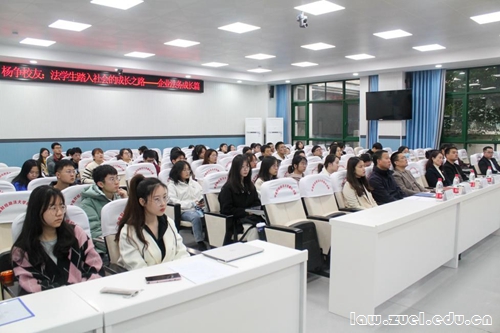 接下来,杨争分享了自己对于法学生“专业对口”的律师、公务员、企业法务等职业的看法,并结合自己二十年来的从业经历告诉大家,无论从事何种职业都是践行法律人的初心,兴趣才是最好的老师,希望自己的分享能为法学院师弟师妹们的职业选择打开一扇新的窗户。