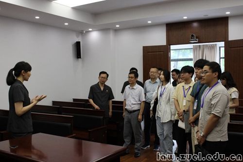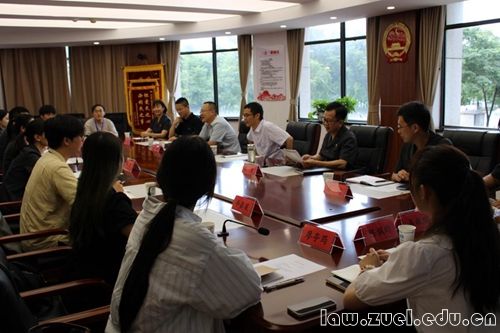 7月14日上午,法学院院长陈柏峰、党委副书记李晓、辅导员吕瑞一行3人,前往洪山区人民法院看望实习生,参观和平人民法庭现代化审判设施,体验智慧法院运行和建设成果,与法院领导、青年干警和实习生交流座谈。洪山区人民法院党组书记、院长邢勇,法院政治部、综合办、审管办等负责同志陪同调研。邢勇主持座谈会。