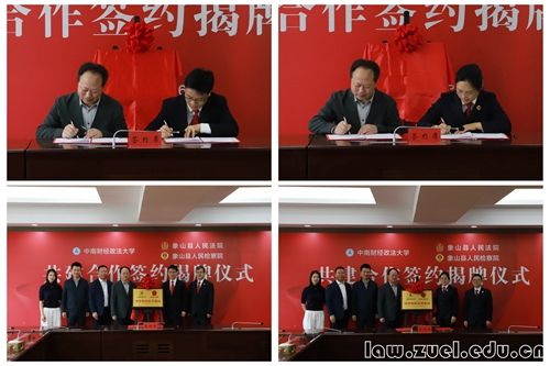 张学平书记分别与金李东院长、陆玉珍检察长签署了共建合作协议书,并揭牌成立中南财经政法大学“法学实践教育基地”。