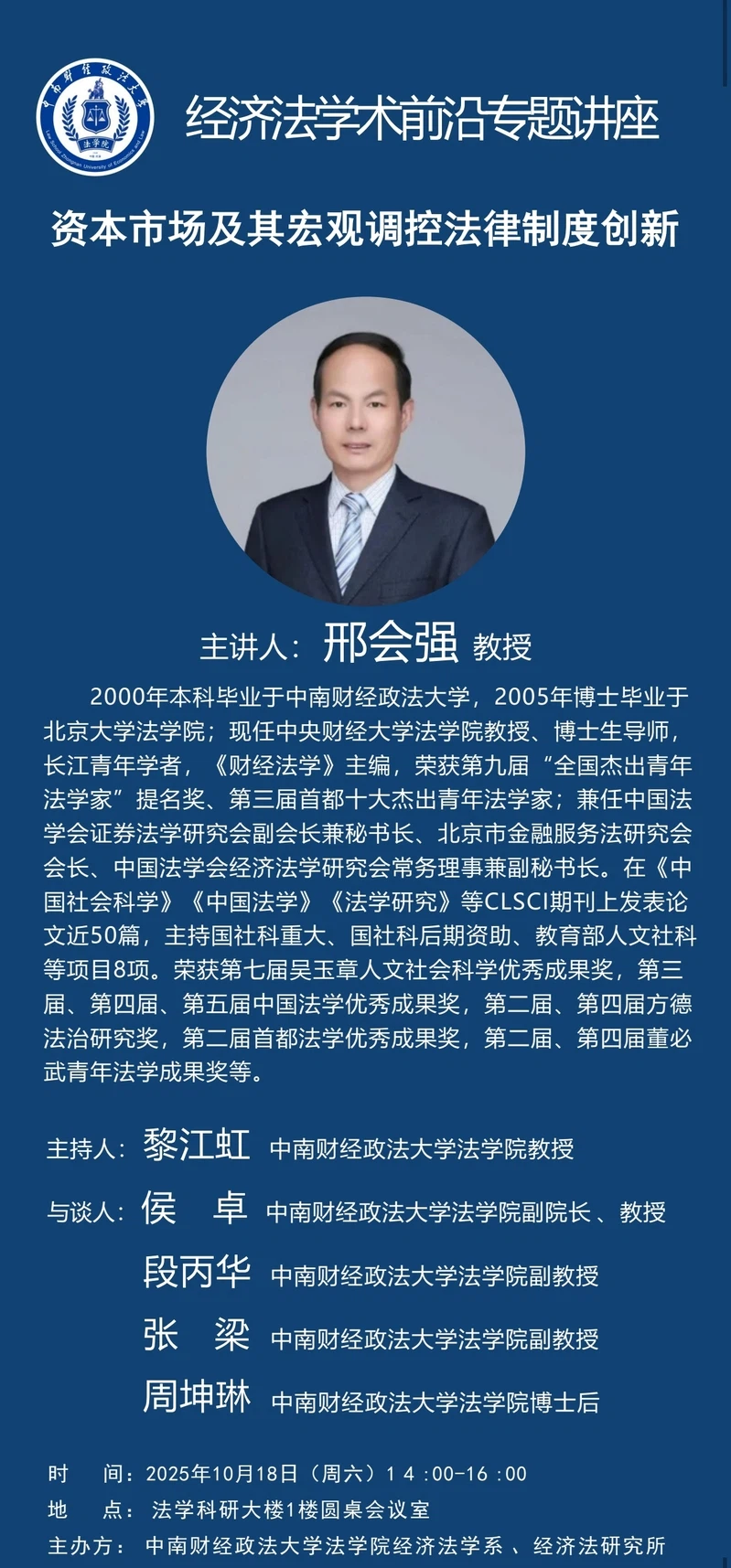 【讲座预告】经济法学术前沿:邢会强教授专题讲座