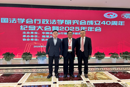 供稿人 (谭冰霖)2025年10月18日-19日,中国法学会行政法学研究会成立40周年暨2025年年会在湖南湘潭隆重召开。本次年会由中国法学会行政法学研究会主办、湘潭大学承办。全国人大常委会、最高人民法院、最高人民检察院、司法部等部门的领导,来自北京大学、清华大学、中国人民大学、中共中央党校(国家行政学院)、中国社会科学院、中国政法大学、中南财经政法大学、西南政法大学、华东政法大学、西北政法大学、湘潭大学等高校和科研机构的专家学者等500余人齐聚一堂,共襄盛举,回顾四十年辉煌历程,共绘新时代行政法治发展蓝图。我院方世荣教授(研究会顾问)、谭冰霖教授(研究会副秘书长)、张青波教授(研究会理事)应邀参加此次盛会。