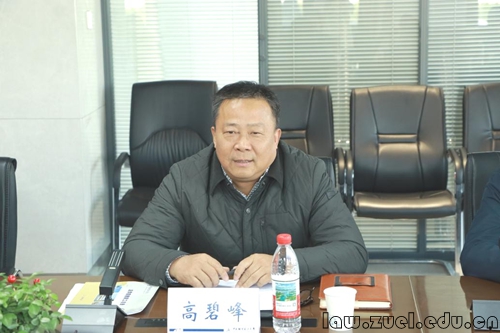 高碧峰书记代表学院对杨昌顺院长一行的到访表示诚挚欢迎。他表示,中南大法学学科建设和法学人才培养不断取得新成绩新进步,离不开法治实务部门的大力支持,离不开校友们的关心支持,希望双方进一步加强互动联系、深化交流合作。