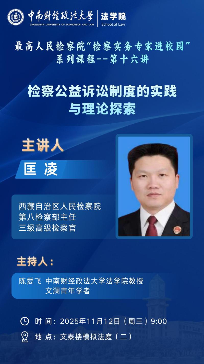 讲座地点:中南财经政法大学文泰楼模拟法庭(二)