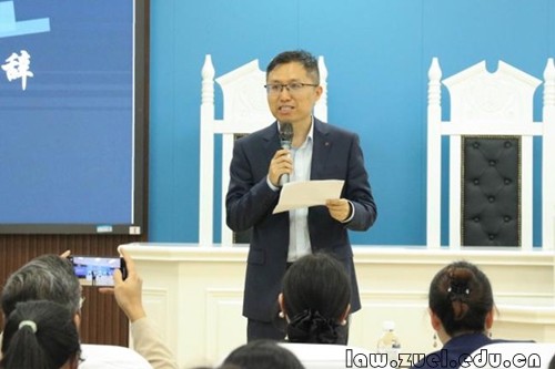 杨柳副院长在比赛正式开始前致辞,他首先对莅临现场的各位评委嘉宾表达了诚挚热烈的欢迎,随后回顾了赛事自2014年落地中南以来的发展历程,并指出这项赛事已成为我院实践教育教学的亮丽名片。杨柳副院长强调,法学教育必须与实践紧密结合,希望同学们通过比赛不仅提升专业能力,还要体现出法律人的温度与责任。最后,他预祝各支队伍赛出水平、展现风采。