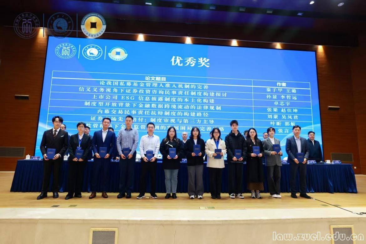 在开幕式上,证券法学研究会副会长邢会强教授宣布获奖论文。张梁副教授、赵仕坤向大会提交的论文荣获优秀奖,并入选刊载于《证券法律评论》(2025年卷)。
