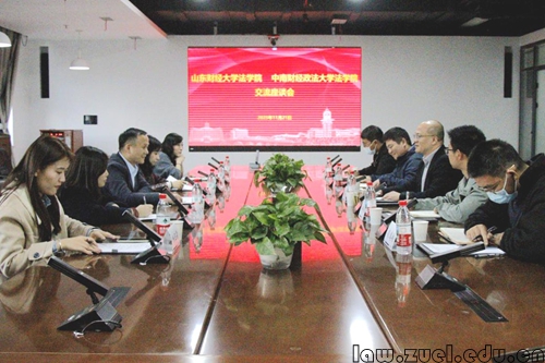 (通讯员 王临登)11月21日下午,山东财经大学法学院党委副书记沙林斌老师率队来我院调研。山东财经大学法学院肖夏老师、张郦老师、团委书记郭蕾老师、党务秘书杨玉霜老师参加调研。我院党委副书记陈金川老师和相关业务科室老师参加座谈。