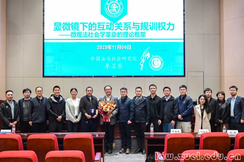 2025年11月6日,上海交通大学文科资深教授兼校务委员会委员、中国法与社会研究院院长、人工智能治理与法律研究中心主任季卫东教授做客中南法理讲坛第二十六讲,带来题为“显微镜下的互动关系与规训权力——微观法社会学革命的理论框架”的讲座,中南财经政法大学纪检监察学院(国家治理学院)副院长刘杨教授主持本次讲座,中南财经政法大学法学院院长侯猛教授,商务印书馆福州分馆副总经理、副编审高山老师,上海交通大学凯原法学院、中国法与社会研究院邱遥堃副教授,中南财经政法大学法学院祁春轶教授、于龙刚教授、梁永成副教授、邓豪副教授、朱程斌老师担任与谈人。上海交通大学凯原法学院、中国法与社会研究院陈曦宜助理研究员、赵泽睿助理研究员,中南财经政法大学法学院姚培培副教授、罗鑫老师、刘雪姣老师,以及来自法学院、纪检监察学院(国家治理学院)等百余名师生参与本次讲座。本次讲座由中南财经政法大学法学院理论法学系和基层法治研究所主办。