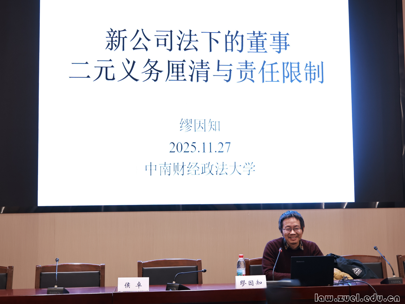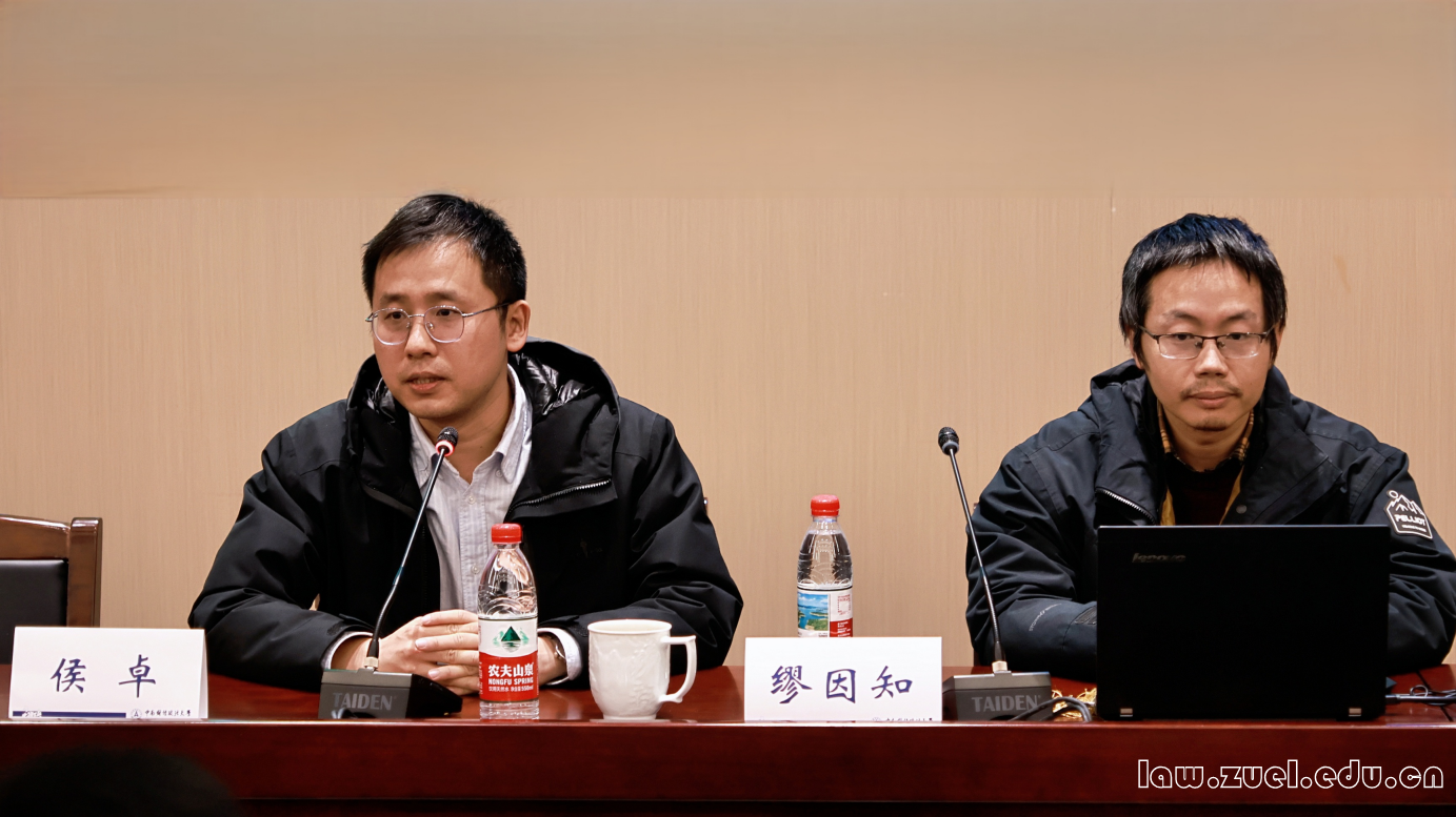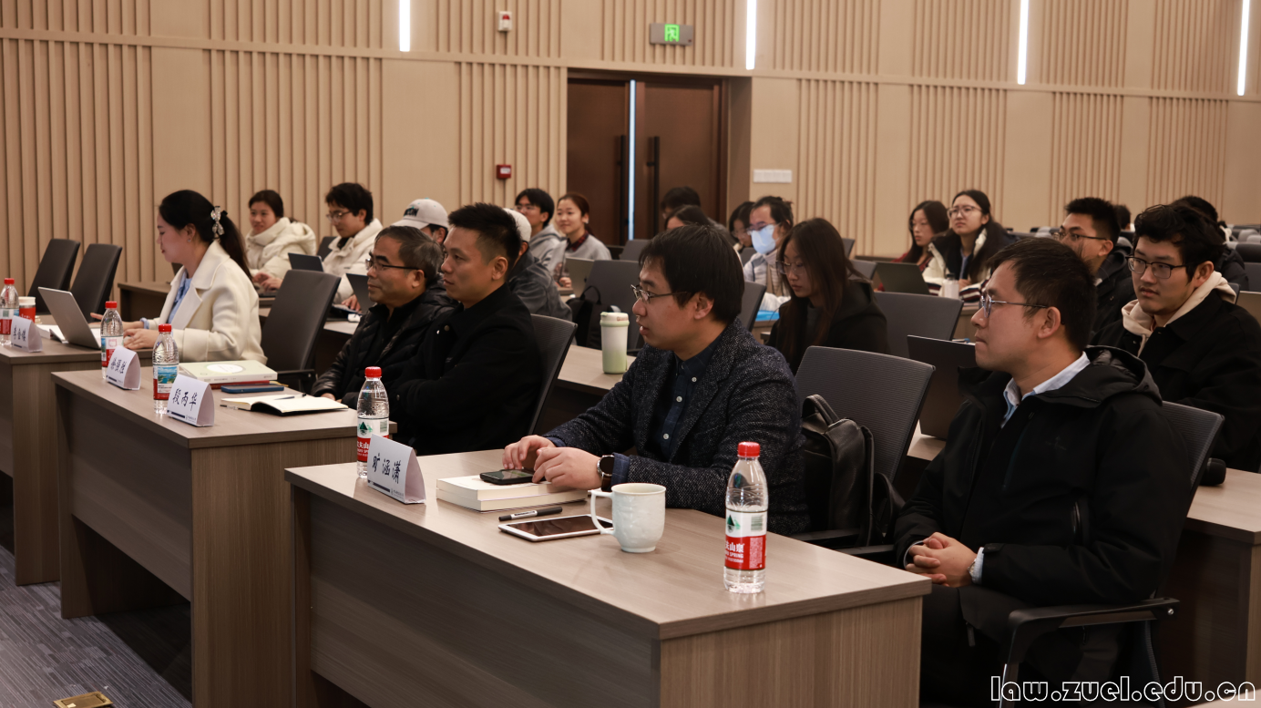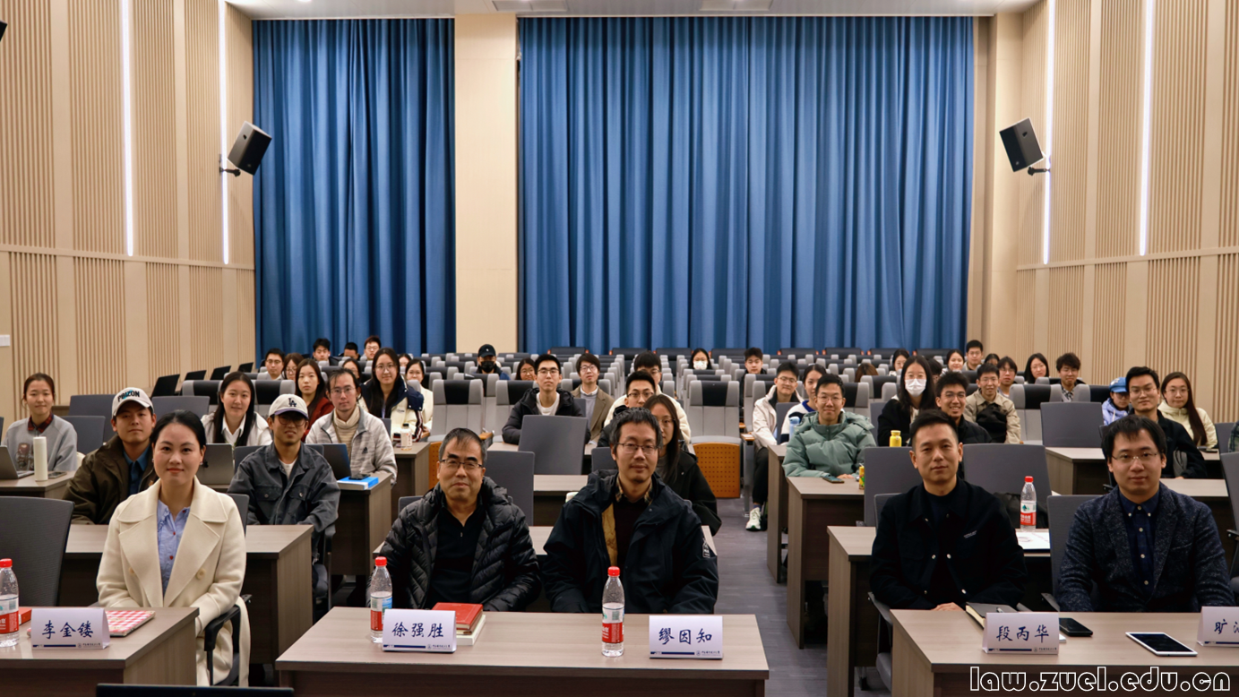 南京大学法学院教授、博士生导师,《法律和社会科学》资深编委缪因知教授应我院邀请,于2025年11月27日14:30-17:00,在南湖校区文湛楼107报告厅开展“商法学术前沿专题讲座”,主题为“新《公司法》下的董事二元义务厘清与责任限制”。本场讲座由法学院副院长侯卓教授主持,徐强胜教授、段丙华副教授、李金镂老师、旷涵潇老师出席活动并参与讨论。本场讲座吸引了近百名学生到场学习。