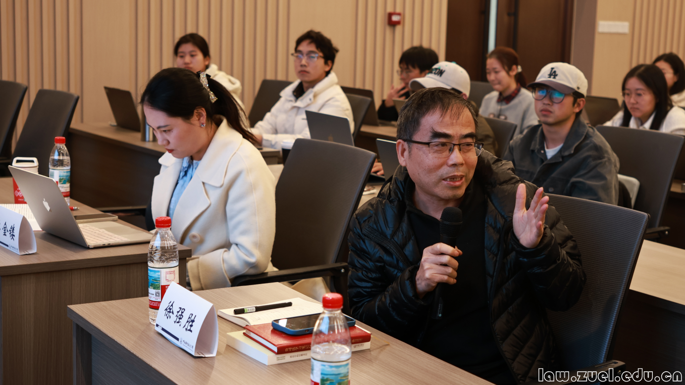 讲座尾声,徐强胜教授作总结致辞。他再次对缪因知教授的精彩分享致以诚挚感谢,并指出,本场讲座对于理解董事义务、明确董事责任提供了富有启发的思路。他也鼓励在场同学在学习中将民法思维与商法思维融会贯通,勇于突破传统理论局限,以创新性的视角深入学习公司法。