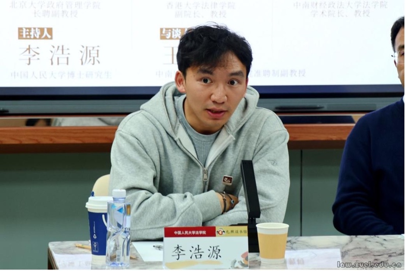 (通讯员 许晓兰 杨智 金舒畅)2025年11月30日晚,由中南财经政法大学法学院理论法学系和元照读书馆共同主办的“历史的‘幽灵’与法学的‘困境’”主题对话讲座在元照读书馆成功召开。该讲座系“法学的历史思维”对话系列讲座第一讲。第一讲由北京大学政府管理学院院长聘副教授罗祎楠、香港大学法律学院副院长刘思达和中南财经政法大学法学院教授侯猛共同对话,中南财经政法大学法学院副教授王小康进行与谈。讲座由中国人民大学博士研究生李浩源主持。