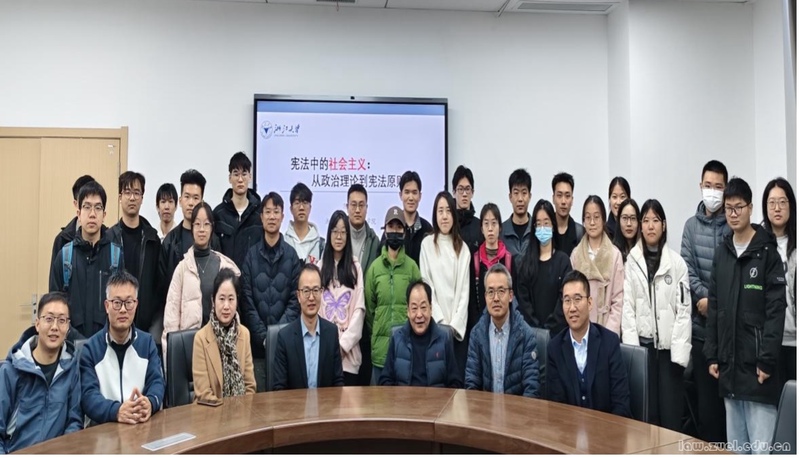 2025年12月1日,浙江大学光华法学院百人计划研究员、博士生导师陈明辉来我院开展“中国宪法中的社会主义”主题学术讲座。我院刘茂林教授担任总结人,我院宪法学与行政法学学科周锐恒老师担任主持人。宪法学与行政法学学科张青波教授、付婧副教授、刘锦老师以及纪检监察学院(国家治理学院)庞远福老师参加讲座,学科博士、硕士研究生到场学习。