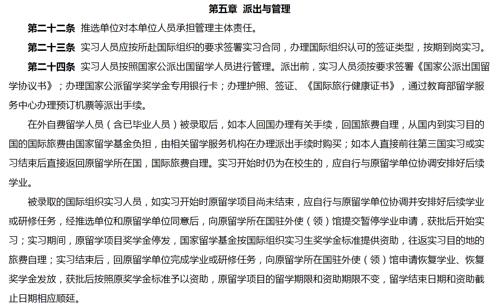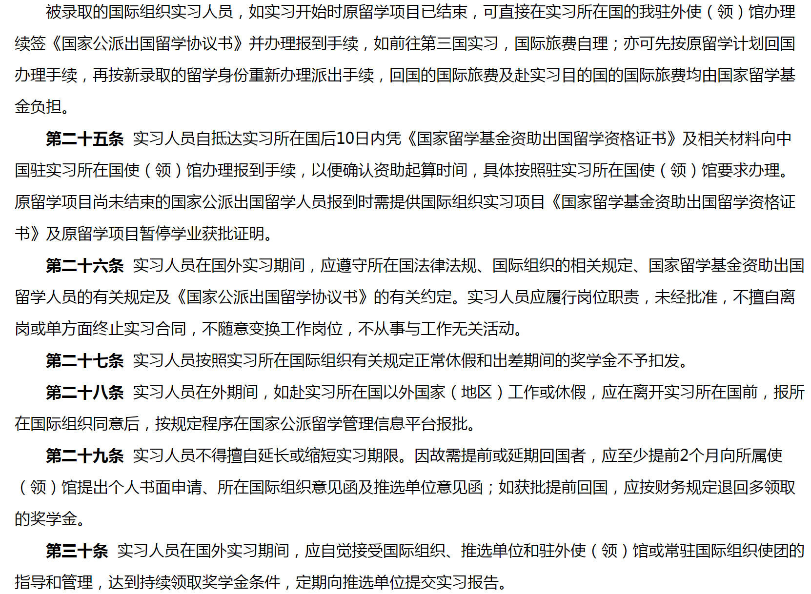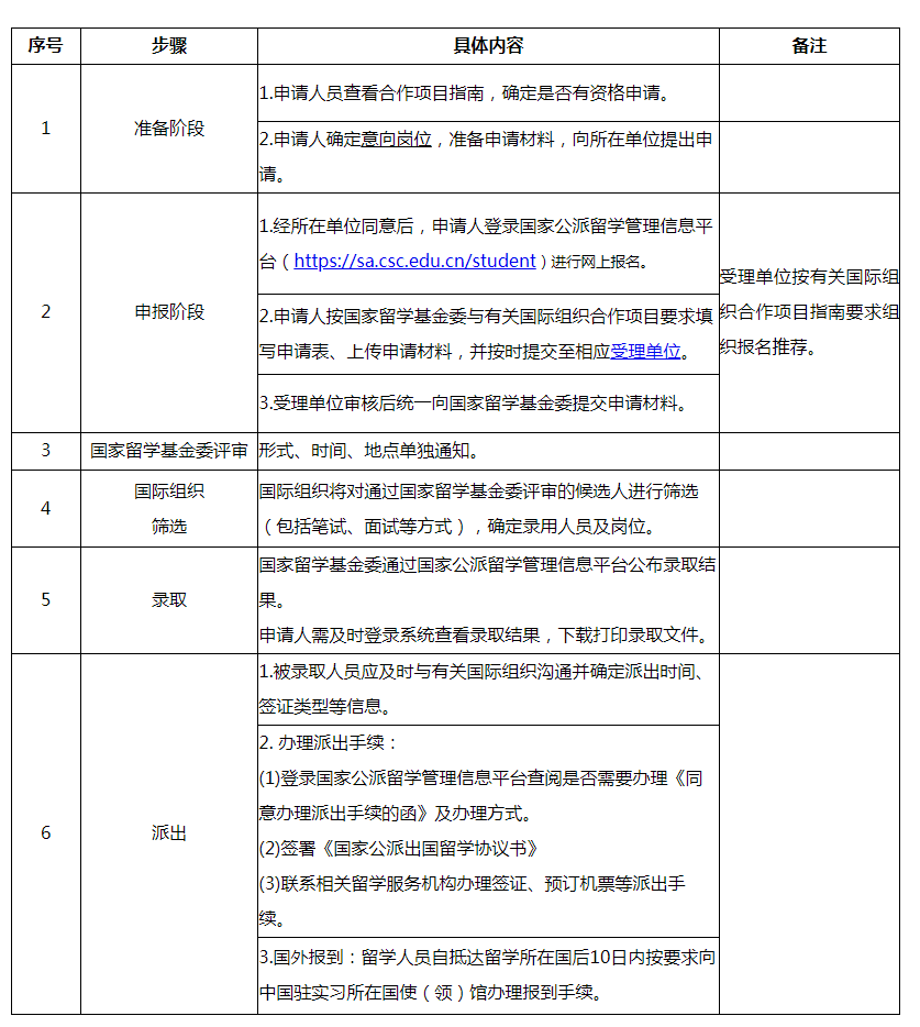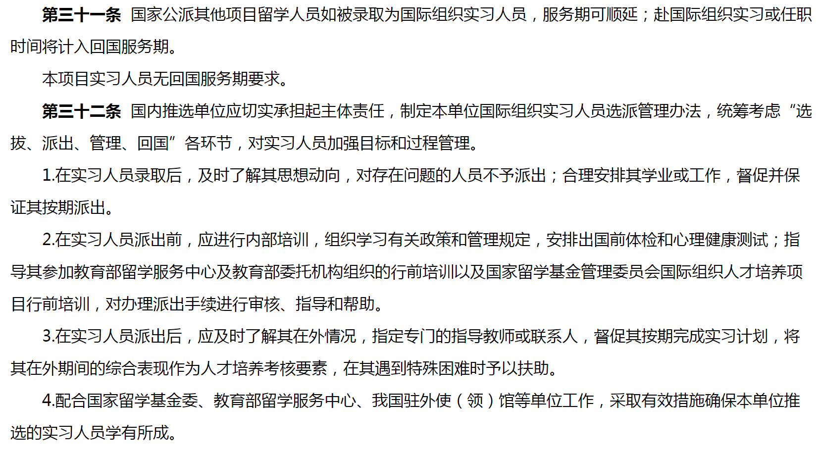 国家留学基金委与有关国际组织合作项目渠道的实习人员,按与有关国际组织的约定执行。