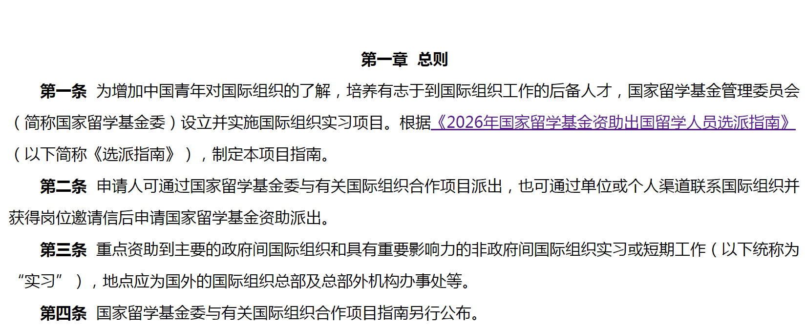 近日,国家留学基金管理委员会(以下简称“国家留学基金委”)发布2026年国际组织实习项目指南。通知内容原文如下: