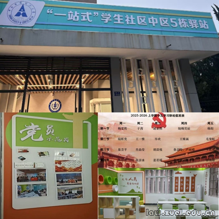 中南财经政法大学法学院坚持立德树人根本任务,党建引领三全育人和智慧服务,全面推进中区2栋、5栋“一站式”学生社区建设,党建引领,信息赋能,全员全息全覆盖共建学生社区“幸福圈”,让党旗在“一站式”学生社区驿站高高飘扬。