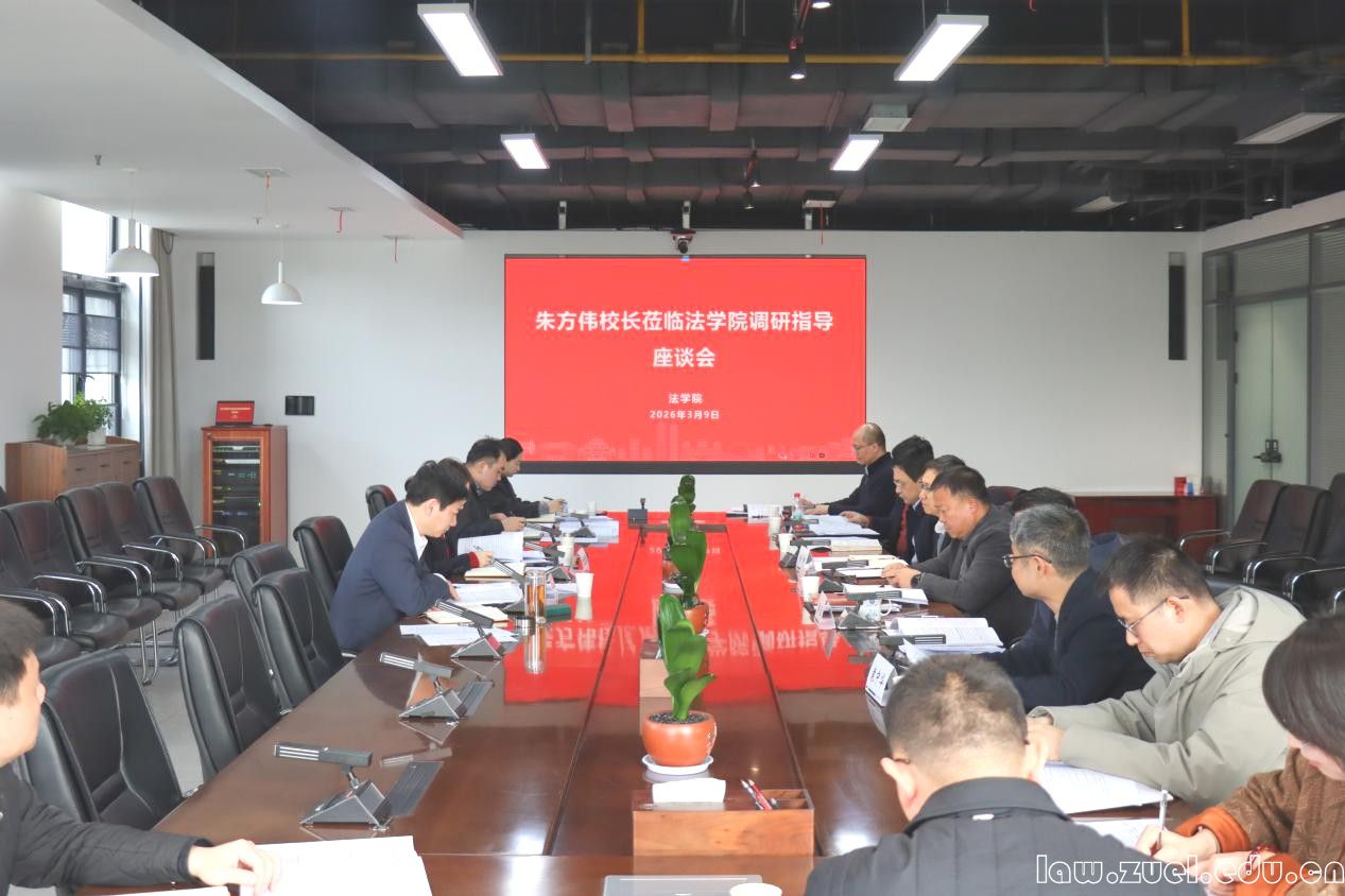 3月9日下午,校长、党委副书记朱方伟深入法学院调研指导工作,深入了解学院“十五五”规划、学科建设、人才培养、综合改革等情况。政策研究与法治办公室副主任万思露陪同调研,学院领导班子全体成员参加调研。会议由法学院党委书记高碧峰主持。