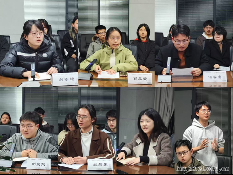 刘姿琦、肖晶莹、何睿康、刘昱东、姚舜禹、杨朗和殷悦等七位同学作为法援的学生代表,分别介绍了法援的组织架构、梯队的培养体系等内容。就其中提及的法援自主案例库的建设,郭倍倍和陈大创两位老师做了相应的补充介绍。钟开炜老师表示团委将继续全力支持法援的各项工作,并就不同层级志愿活动及参与相关赛事等内容,提出了具体的建议。