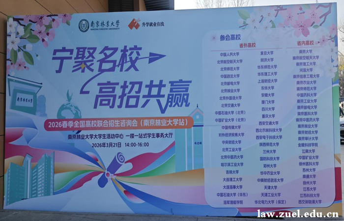 为持续提升我校在江苏地区的招生影响力,精准对接区域优质生源,3月21日,法学院国际化办公室主任胡婷赴南京参加2026年宁聚全国高校联合招生宣传活动,面向南京地区高三学子及家长提供一站式招生咨询服务。