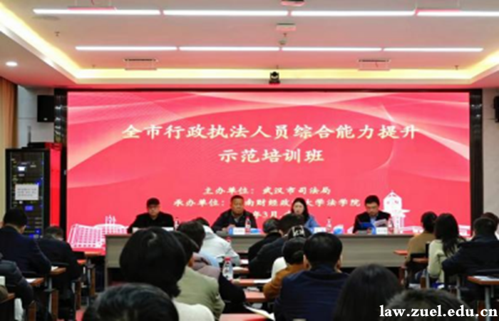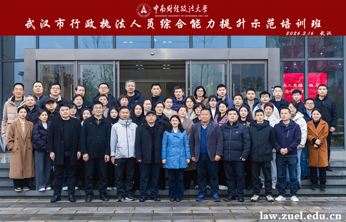 3月15日-20日,由武汉市司法局主办、中南财经政法大学法学院承办的“2026年武汉市行政执法人员综合能力提升示范培训班”在我院顺利举办。全市各行政执法部门的骨干执法人员、各区司法局的分管领导参加本次培训。